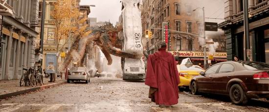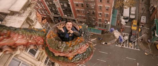 此时平行宇宙的怪物与美姐跌落大闹纽约,博士立刻换装行动,这个动作全片最帅!
