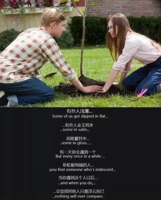 「有的人金玉其外,有的人败絮其中。总有一天你会遇到一个像彩虹般绚烂的人,然后,你会觉得其他人都是浮云。」