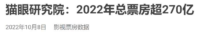 找了一个最近的数据,截至 2022 年 10 月 8 日,国内累计票房是?270 亿