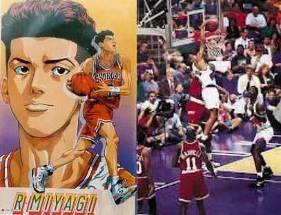 泽北荣治发型参考了便士哈达维,打法纯然是乔丹,对湘北最后一球,完全复制乔丹.1989.年对骑士的.The.Shot。这些都太明显了。