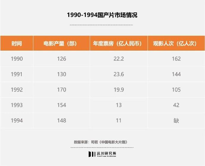 而 90 年代之所以要引进大片,是因为当时国内的电影市场已经见底。