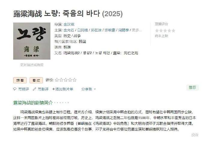 原计划中韩合拍的史诗大片《露梁海战》,也在 2016 年后胎死腹中
