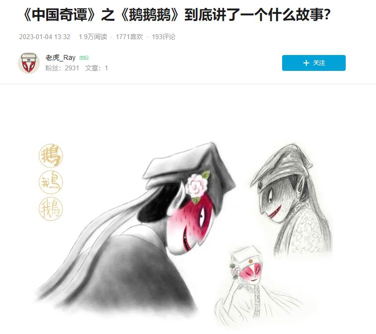甚至小辣椒还在《 鹅鹅鹅 》评论区的置顶留言中找到短片导演的亲自现身说法,在知乎写了一 ?个回答:《中国奇谭》之《鹅鹅鹅》到底讲了一个什么故事?