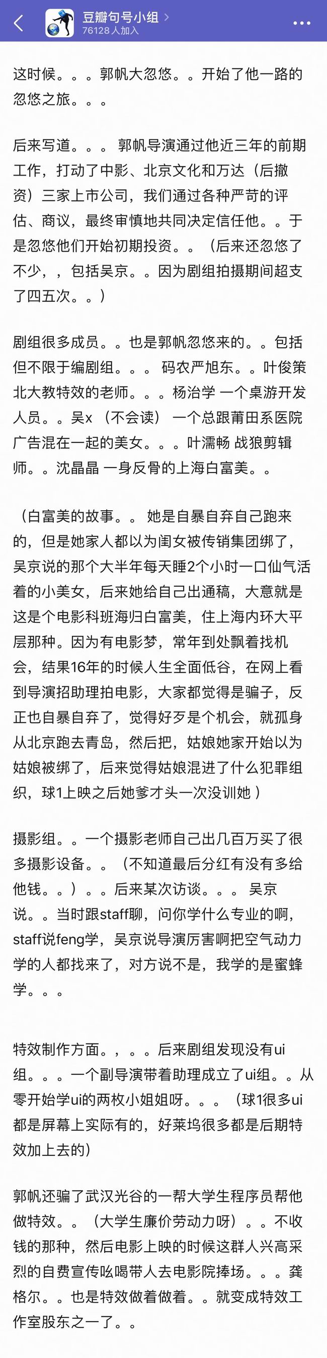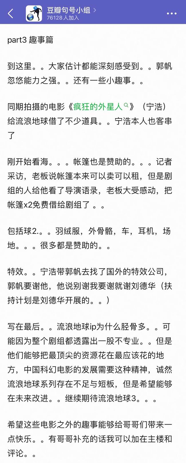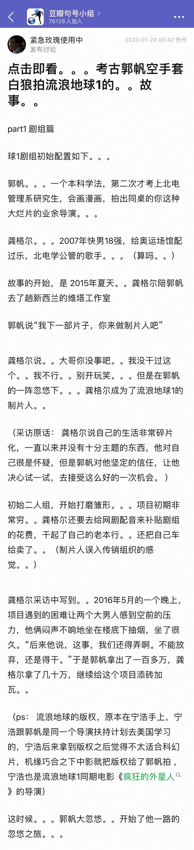 @钮祜绿豆: 看到个帖子讲流浪地球 1 筹拍的幕后故事,我又补充了点,又好笑又无奈,荒诞到无厘头