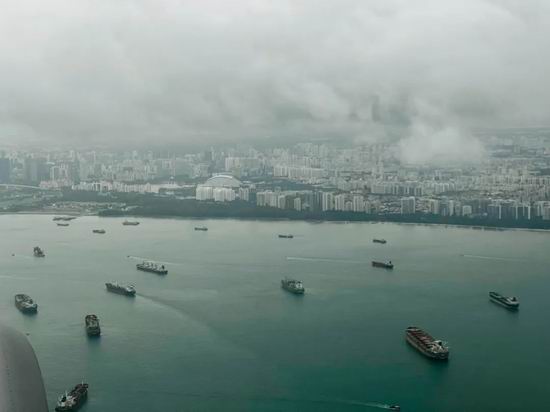 从飞机上看下去,新加坡的近海全是船