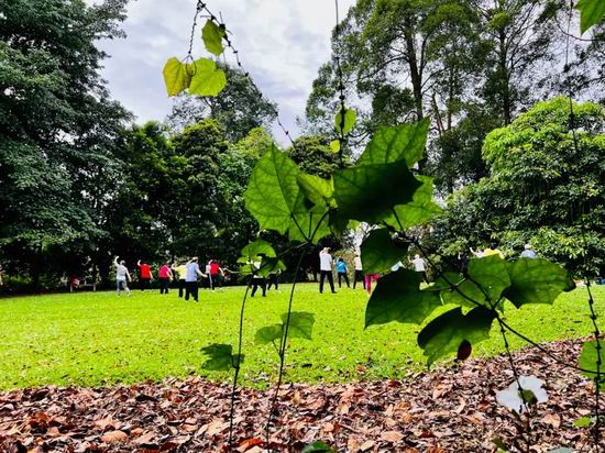 新加坡植物园里打太极的老年人