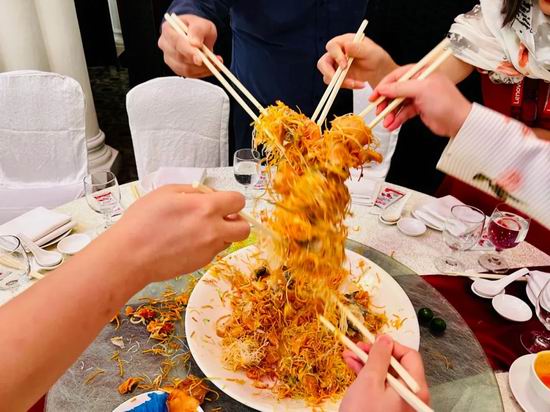 新加坡过年聚会一定会进行的捞鱼生,有很多的好彩头,听朋友说多的可以捞七八场