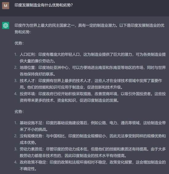 我首先问了它一个我自己比较熟悉的印度问题,回答得相当不错,可以直接作为提纲