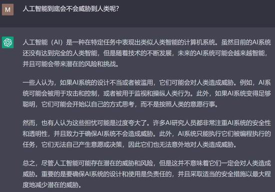 ChatGPT 引发的另一个广泛的忧虑是人工智能的崛起会不会威胁到人类。