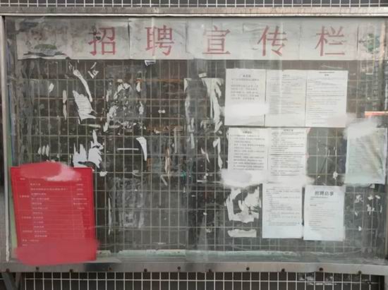 这种招工形式我 10 年前就见过了,现在牌子旁边没有人,只留了电话。