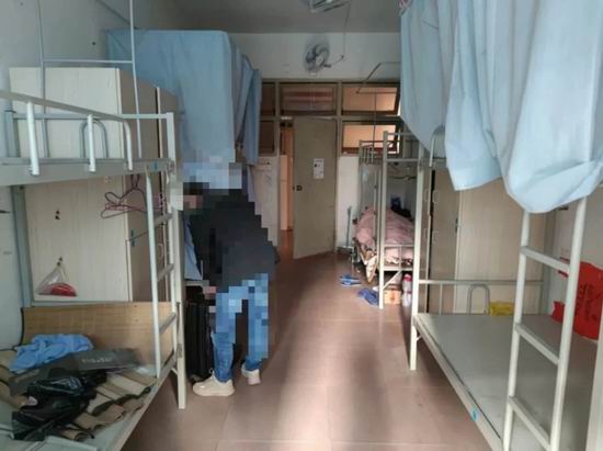 我原以为是宿舍房间还在装修,没想到是屋内一位刚上完夜班的大哥正在睡觉。