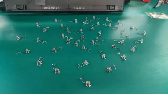 上工的第二天,我又被安排装电池盒里的弹簧,放在指定的位置,用镊子摁一下即可,全程就两个动作。