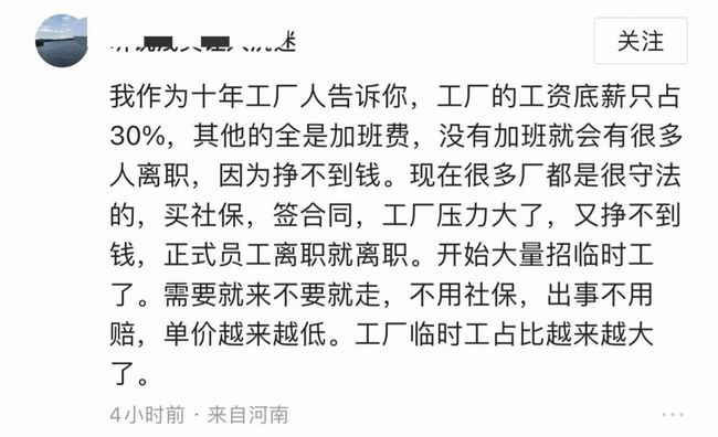和很多人理解不一样的是,工厂不让加班大家就离职