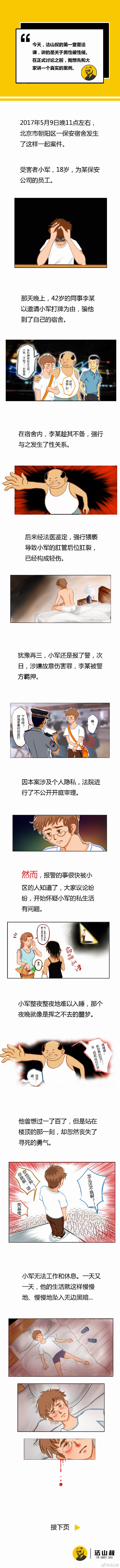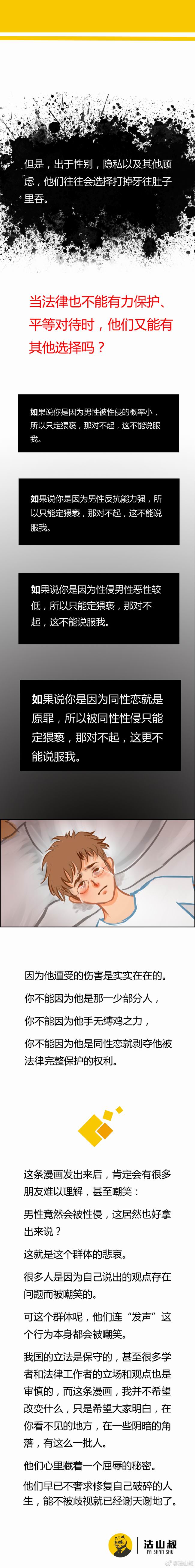 @法山叔:#对性侵说不 #最近有朋友提到男性被性侵的事。关于这个话题,可能很多真实情况大家并不清楚。在看完我们做的这幅条漫后,诸位对这个问题或许会有更多的了解。