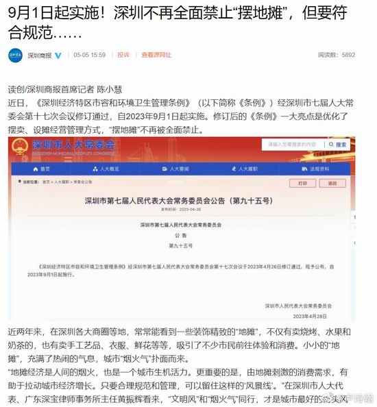 一个是前两天的深圳放开摆地摊,如果说之前,很多城市还在权衡文创卫生和地摊经济,那么随着大众对于淄博的舆论支持,深圳的跟进,认为