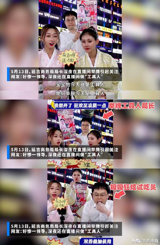 这一块,我觉得能作为参考的,是前两天 #延吉局长回应深夜直播间举牌# 这个案例。之前很多地方让文旅局长去直播带货,有的效果好,有的效果一般~