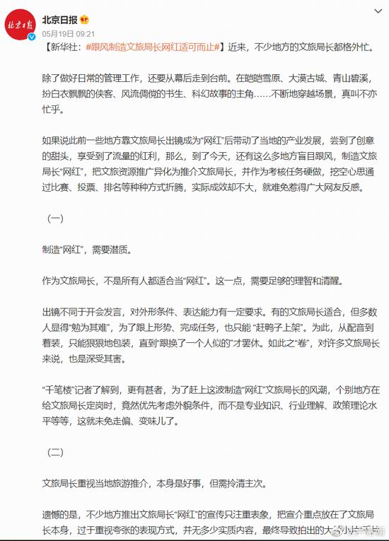 第二个是昨天的 #跟风制造文旅局长网红适可而止#