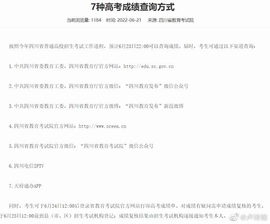 许多地方考试院都开通了公号查询入口,甚至刚刚看到四川地区考生还可以关注微博查询的。