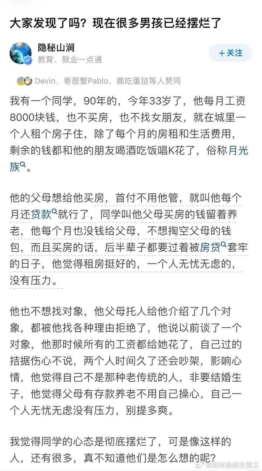 经济有周期,人与人之间也有巨大的差异,每个人在不同阶段选择不同的生活方式,我觉得这不叫摆烂,这叫适者生存