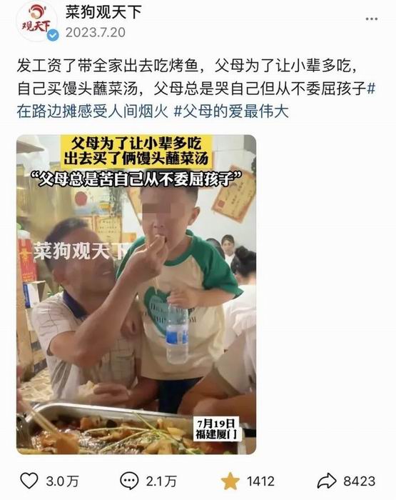 一个馒头蘸菜汤的场景,唤醒了多少中国年轻人,从小被“亏欠式教育”笼罩下的童年阴影。