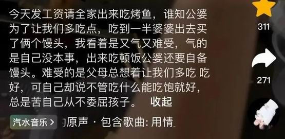 发视频的这位儿媳,平时经常晒自己的公婆对自己有多好的视频,但这一次,却没有引起共鸣。