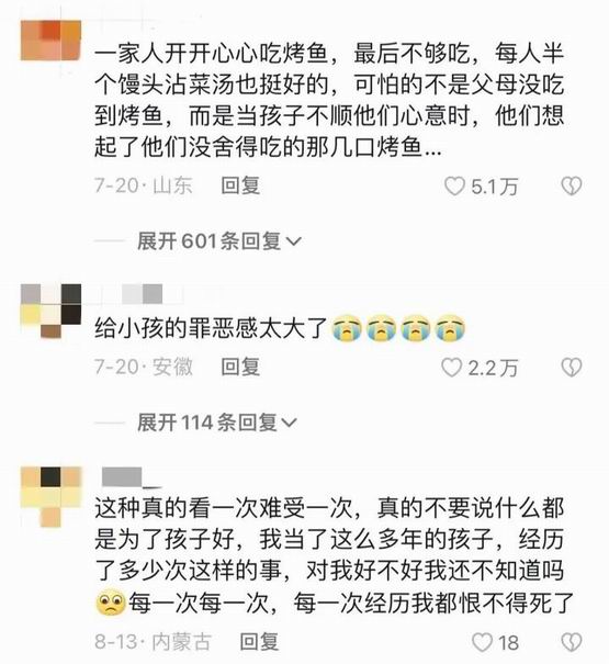 “为什么不能一家人都开开心心地吃烤鱼?给小孩的罪恶感太大了。”