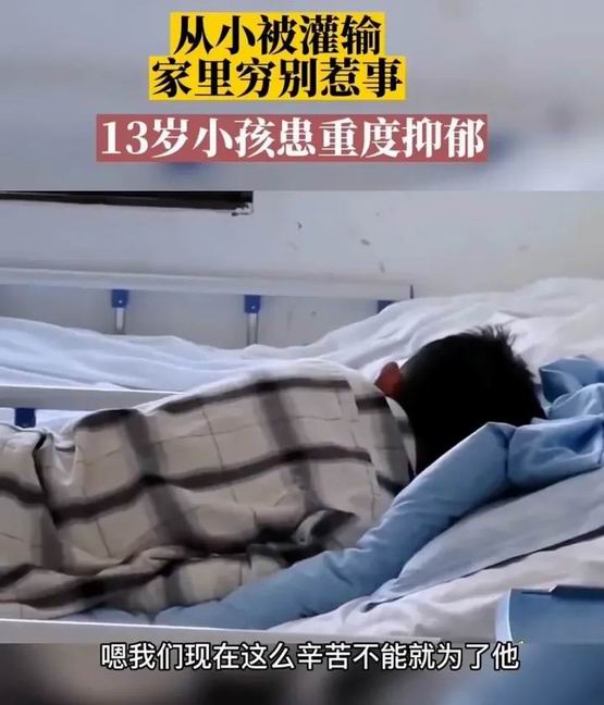 比如这个13岁的男孩,从小被灌输“家里穷,别惹事”的观念,长久以往患上了重度抑郁。