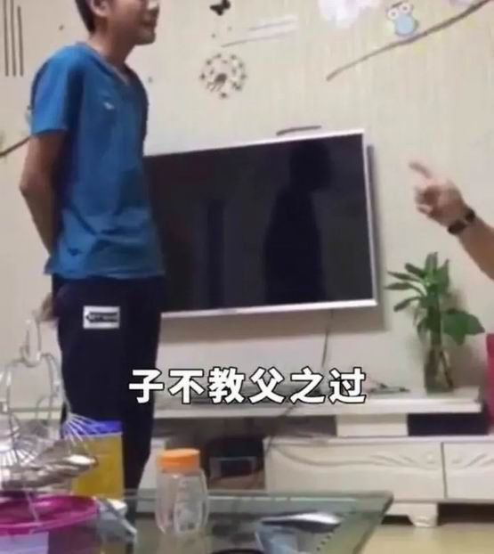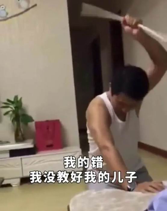 比如这位爸爸,因为儿子把手机带到了学校里,就一直逼儿子打自己:“子不教父之过。”