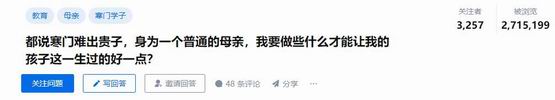 “都说寒门难出贵子,身为一个普通的母亲,我要做些什么才能让我的孩子这一生过得好一点?”