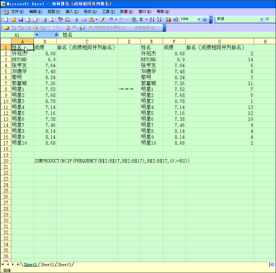 前面说了,跟第五十一讲不同,本节主要讲述在成绩排名中容易出现的情况:那就是得分相同并列排名。
