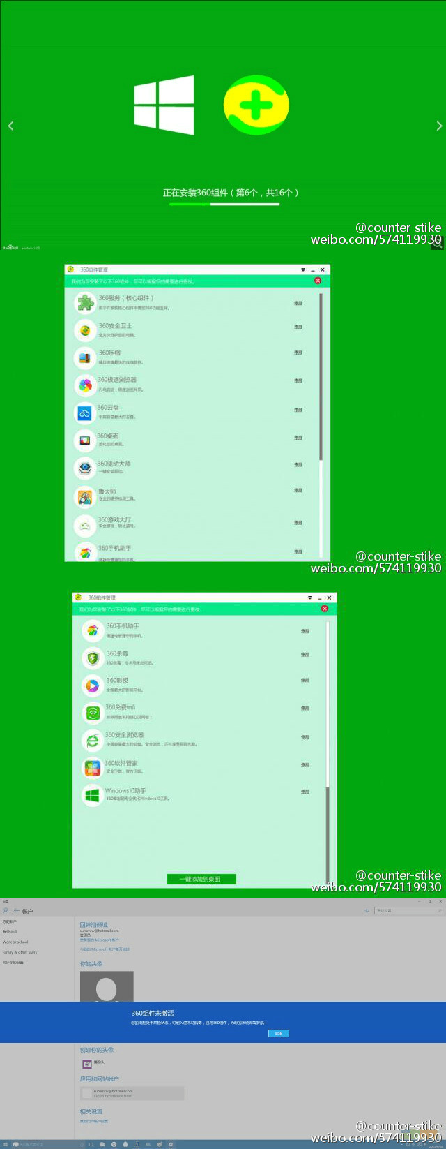 传说中的WIN10 360版,大量360内置,如果停用360就会进入未激活状态。