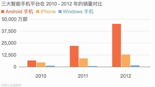 而在诺基亚等待 Windows Phone 8 的两年里,iPhone 销量翻了三倍、Android 翻了六倍多。