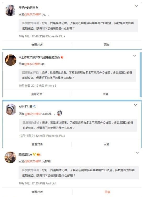 苹果客服表示,最近 Apple ID 被盗事件数量增多,"每10个接进来的电话里就有1个是Apple ID被盗",对方还表示,近期被盗的用户多数使用的是QQ邮箱。