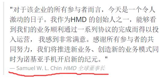 HMD 的创世人兼全球董事长 Samuel Chin,之前是富士康的执行董事兼主席!