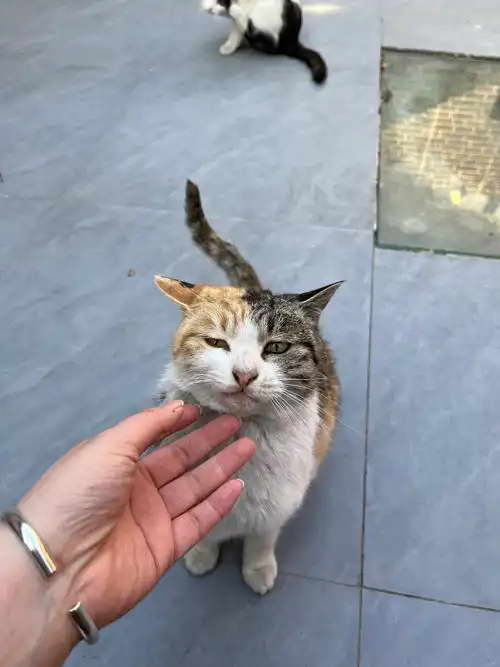 我看小叔留下了几块肉,吃完饭休息的时候,他从兜里掏出肉来,慢慢撕开小块,递给一直在旁边趴着的几只小猫。