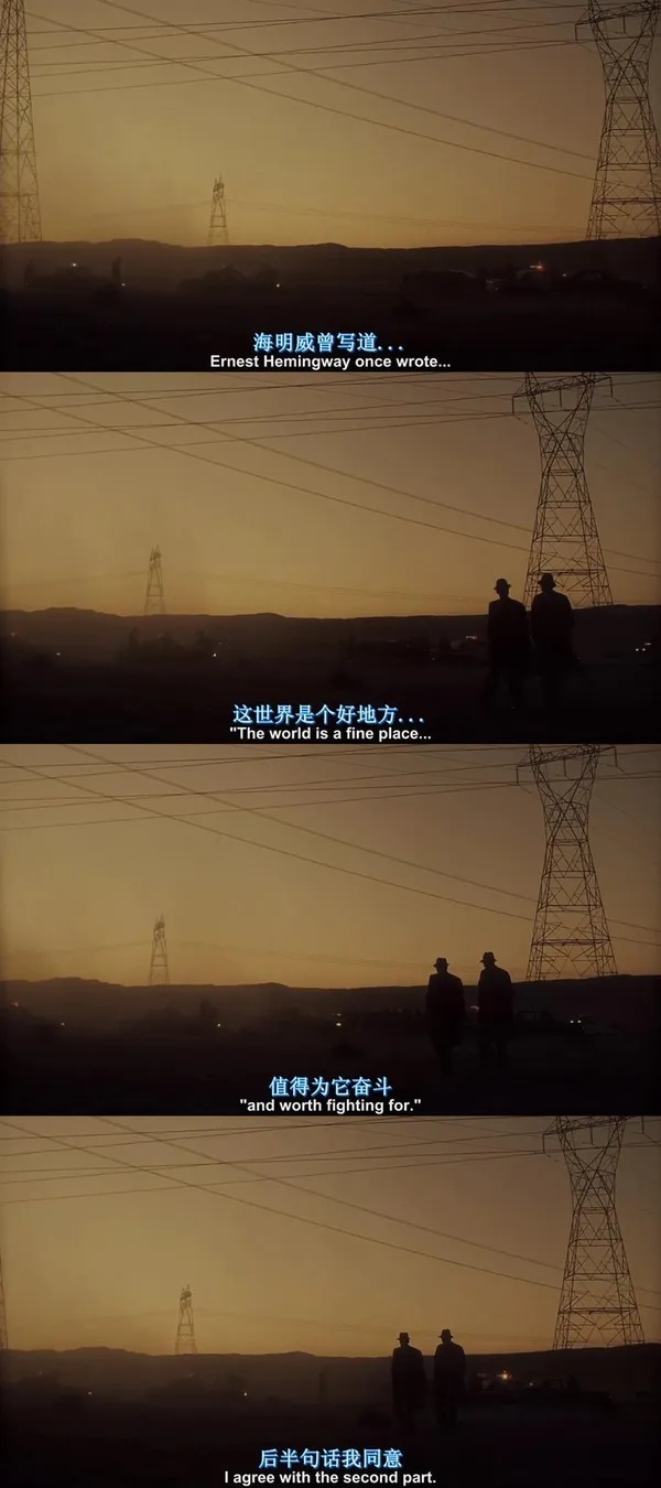 “海明威曾经说,这世界是好的,是值得为他奋斗的。”