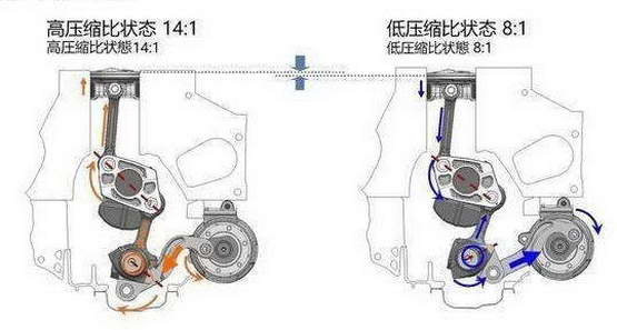 就比如日产标志性的可变压缩比发动机,就可以通过非常精妙的结构来改变发动机活塞的运动轨迹,让气缸里面的汽油按照工况时而被压缩的紧一点,时而松一点,避免浪费。