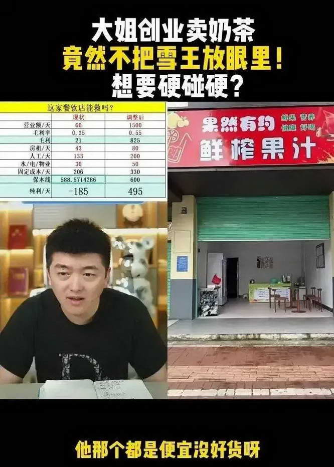在全国各地,涌现了一批充满智慧的创业仙人。他们宁可负债几十万,也要在知名奶茶店隔壁开一家杂牌奶茶店,立志拳打蜜雪,脚踢瑞幸。