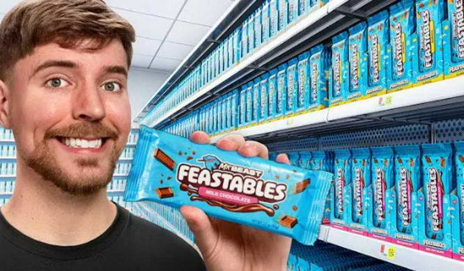 2021 年,他又推出了巧克力品牌 Feastables,并为该品牌策划了一场极具创意的营销活动:复刻电影《查理和巧克力工厂》中的经典场景,购买巧克力的消费者有机会抽取 “幸运门票”,中奖者可前往现场参与挑战,幸运儿甚至有机会赢得一家巧克力工厂的所有权。
