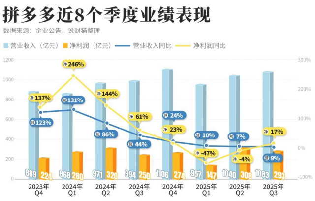 三季度,拼多多实现总收入 1082.77 亿,同比增长 9%;