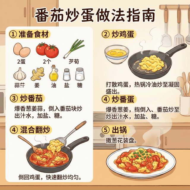 画一张图,介绍一下番茄炒蛋这道菜的做法