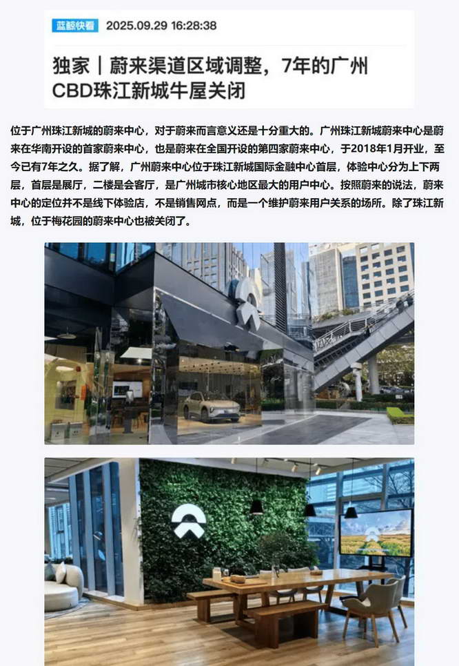 今年 9 月,蔚来就关闭了在广州珠江新城开了 7 年的标志性牛屋,随后还有杭州、重庆等等,连海外都改回了传统车企的经销商模式。