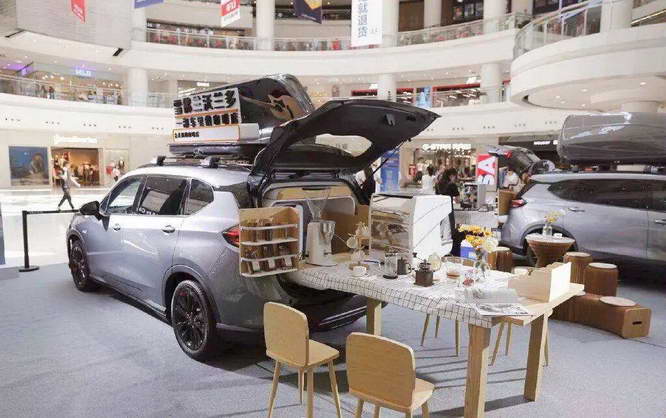 所以除了商超店以外,车企还会选择快闪店、巡展等等更 “轻量化” 的营销方案。我们在商场中庭、走廊、广场等看到的一些汽车展子就是这么回事。