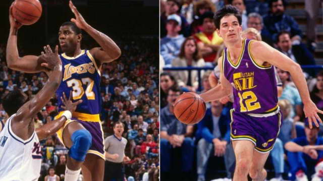 斯托克顿极少冒险,魔术师始终在冒险;斯托克顿有惊鸿一瞥的长传和追身投,而追身压迫找错位破坏防守是魔术师的日常。