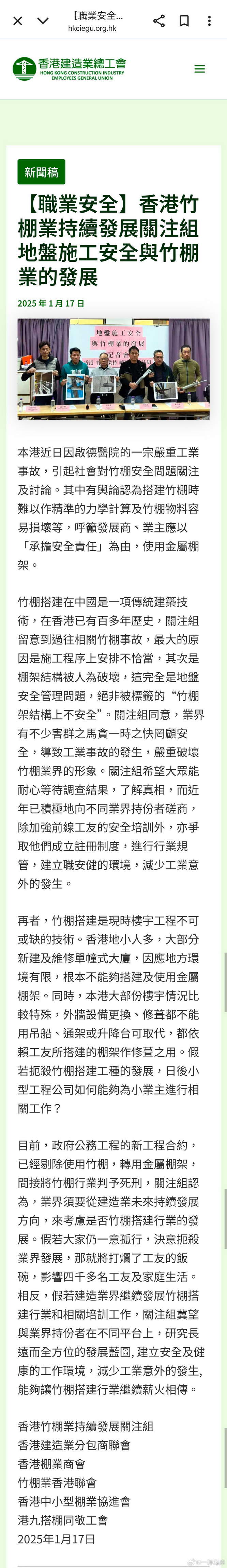 香港竹棚业就发了一则文章。