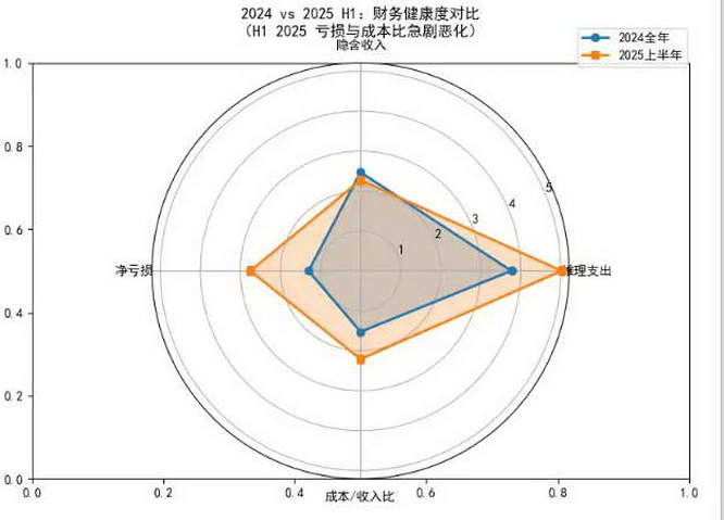 它不仅长期亏损,2025 年 Q1 成本 / 收入比飙升至 2.01,意味着每赚 1 美元收入,就要花掉 2 美元成本。