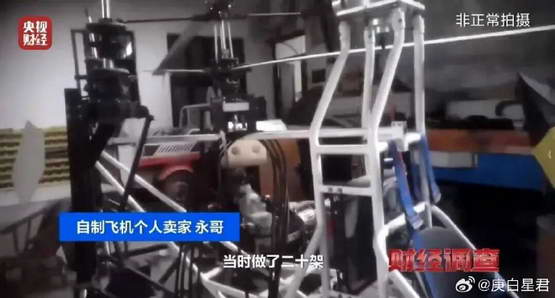 飞机、手搓、三无,这几个字单独列出来你肯定都知道啥意思,但组合在一起你估计就不知道啥意思了。近日央视新闻曝光了山东邹平市魏桥镇一家面条厂,说其利用简陋工具,偷偷违法私制三无飞机并对外销售。根据老板自己的介绍,前一批飞机已经生产了 20 架,目前已经出售了 18 架,单价 8~18 万元之间,可根据客户要求进行定制改造,老板自称客户好评如潮。这些飞机载重 160 公斤,时速 100~180 公里不等,四川有个客户买了飞机后曾经飞到过 3000 米高。央视新闻的原曝光视频很长,我把其中最关键的部分截取两分钟给大家看一看,让大家直观的感受下央视是真的报道了这个事。是的,我知道大家应该会相信央视真报道了这个事,毕竟我这么大的账号不可能去 P 央视报道的图,这事铁定是真的,但这事确实过于离奇,我觉得让大家看看原视频会感受的更深刻。