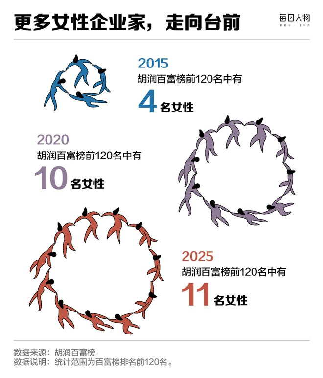 过去很长一段时间,商业世界几乎是由男性主导,如今,更多女性站到了舞台中央。登上百富榜的女企业家占总人数的 22.4%,其中超过七成是创一代,白手起家。