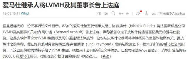 而最新消息是,气不过的普伊奇,最近怒将 LVMH 董事长伯纳德?阿尔诺告上法庭,声称他夺走了自己超百亿美元的爱马仕股票。