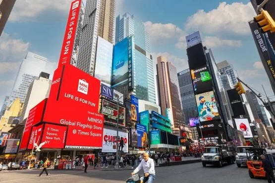 就在宣布转型的一年前,名创优品在寸土寸金的美国曼哈顿开出 740 平米的旗舰店,与爱马仕、LV 等老钱高奢为邻。